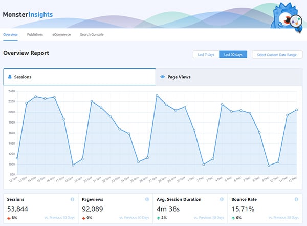 Now you’ll be able to click on the Publishers tab right from your MonsterInsights dashboard to get the insights you need.