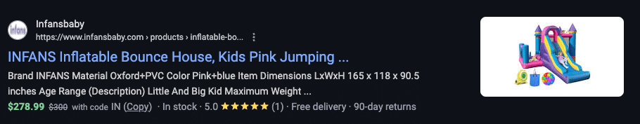 See the rating, price, and more underneath this search result, plus the image next to it? That’s product schema: