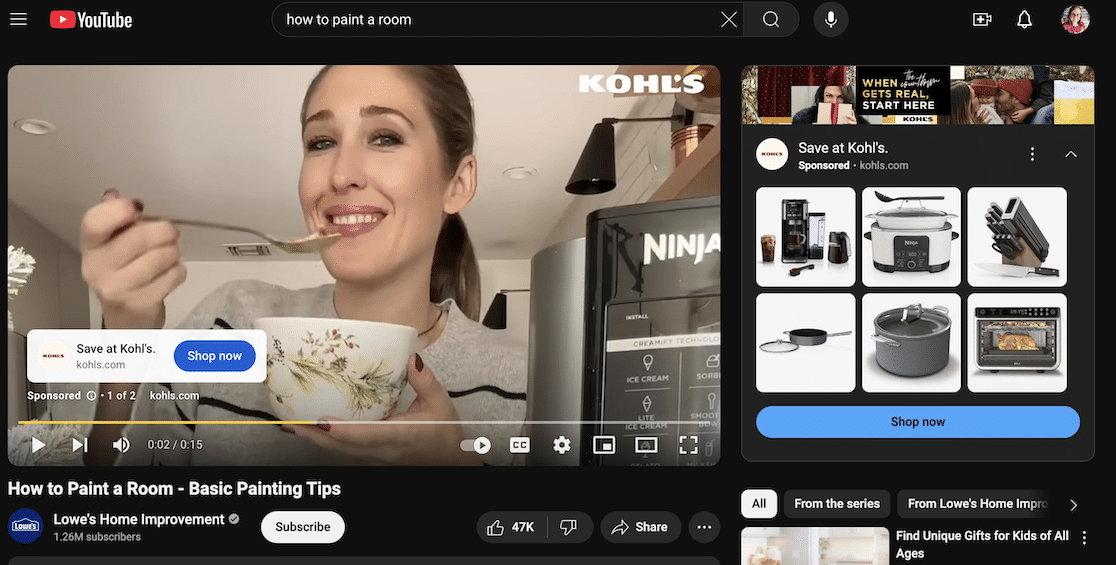 Using Google Ads, you can run PPC (pay-per-click) ads that appear on search results pages (at the top and bottom), on the display network, on YouTube, and more.