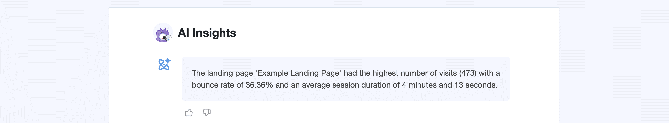 Get AI Insights in case you’re not quite sure where to start yet with your collected analytics. Check in on the randomly generated AI Insights to keep on top of trends and observations of your data made for you.