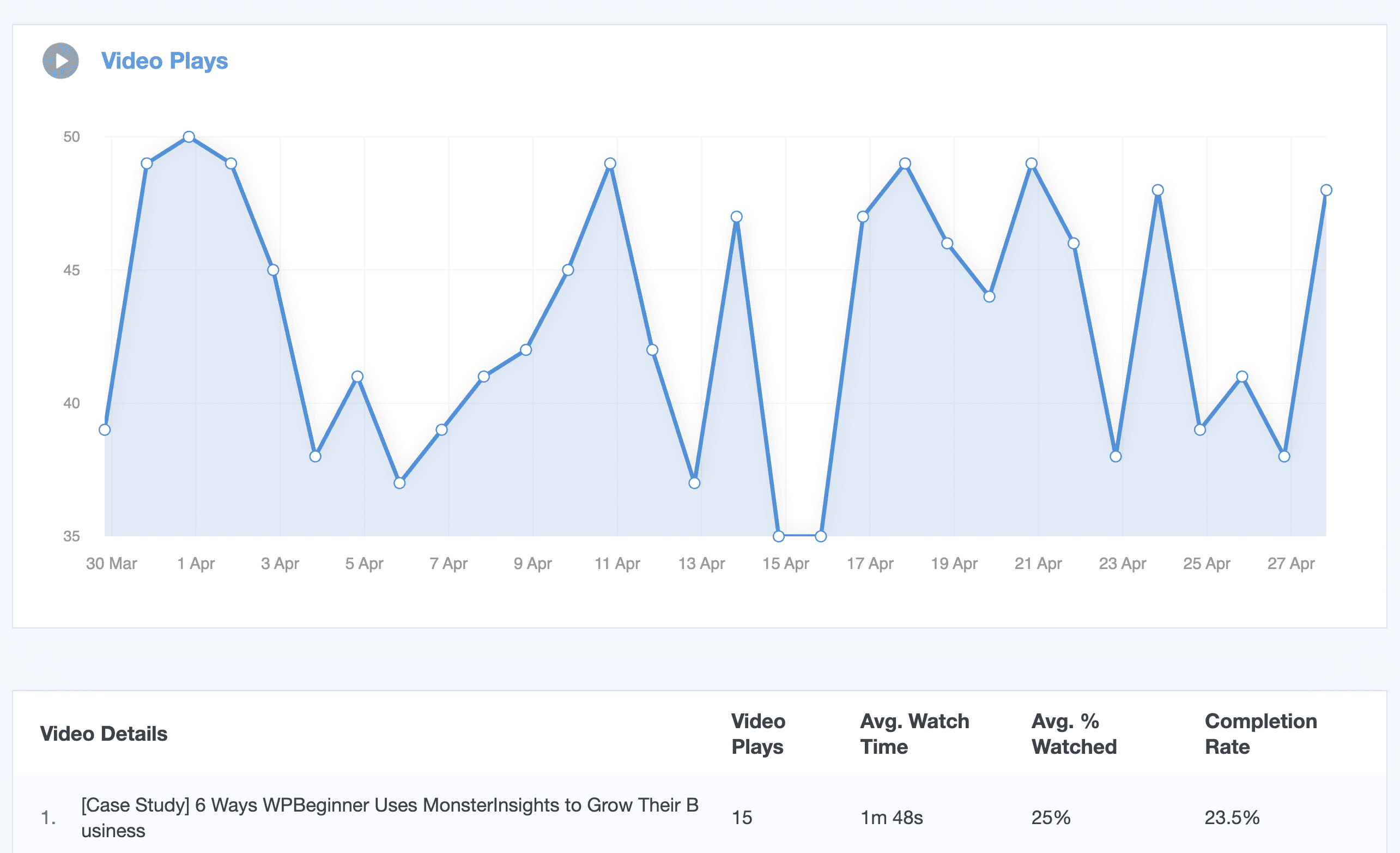 Track how site visitors interact with your embedded videos. See how often they hit play, how engaging the video content is and how much of the video is actually watched through. Available after enabling the Media addon.