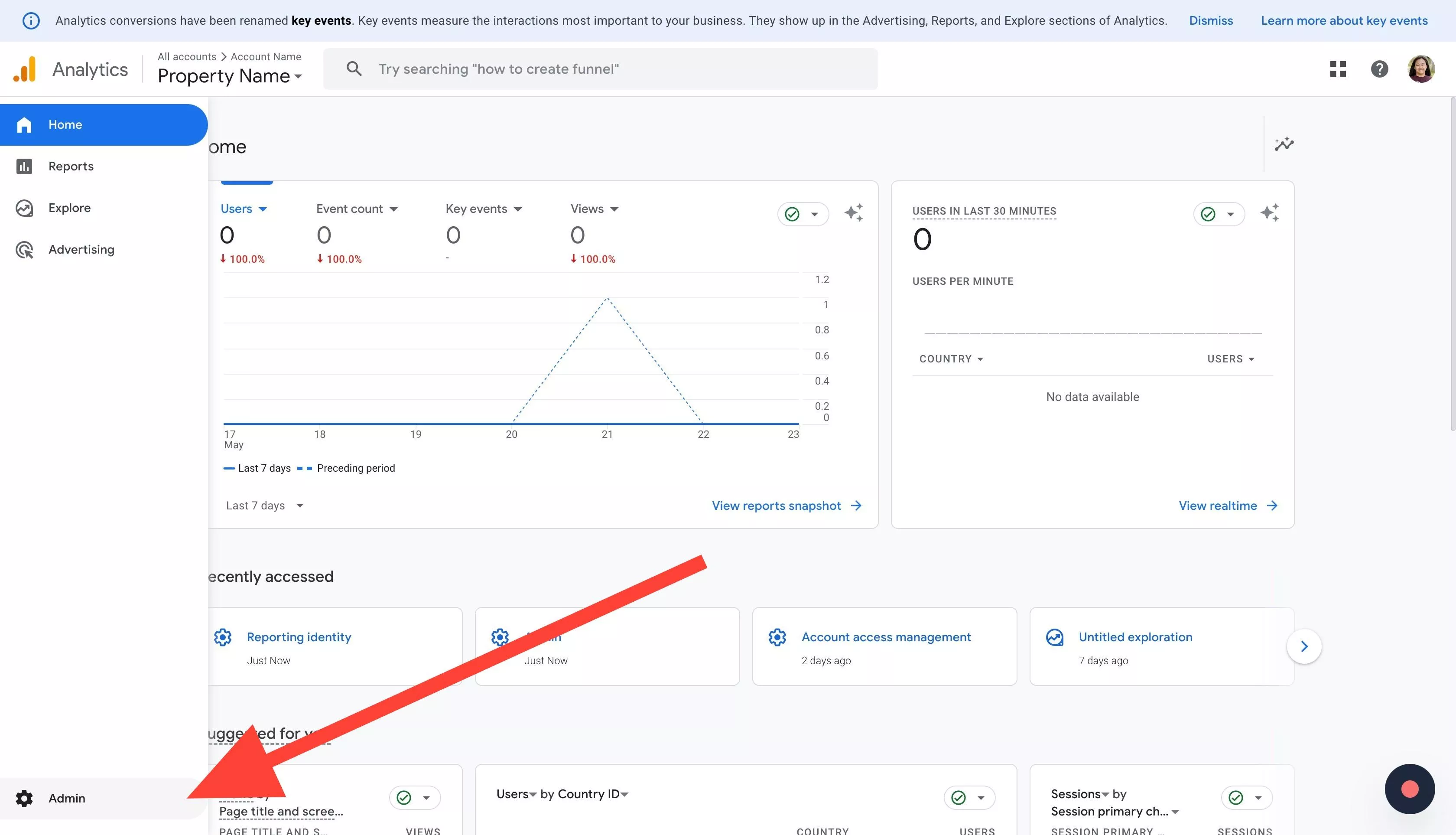 Make sure you’re using the correct measurement ID for the property you want to track. If you’ve created a couple of different properties and/or data streams, it can be easy to accidentally grab the wrong one. Take note of the name of the correct one, install that code, and open that property to find your data.