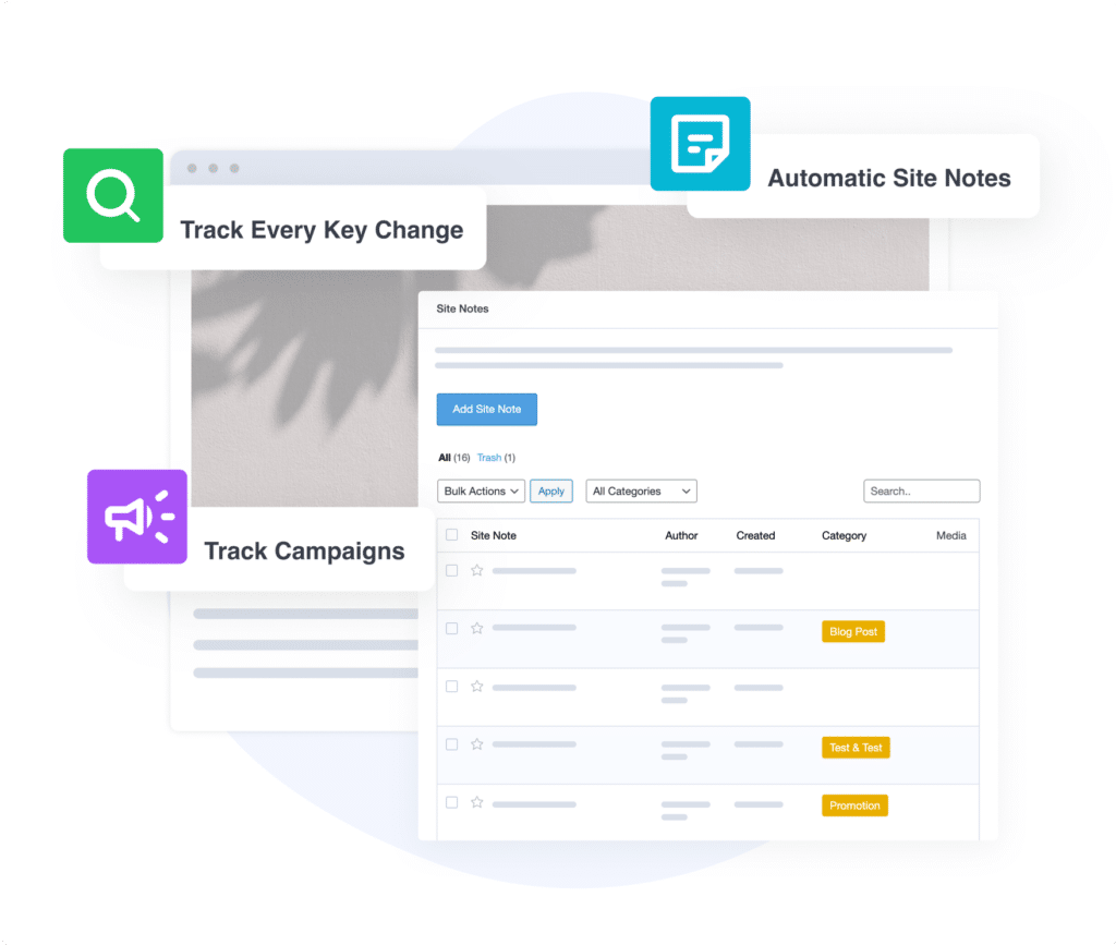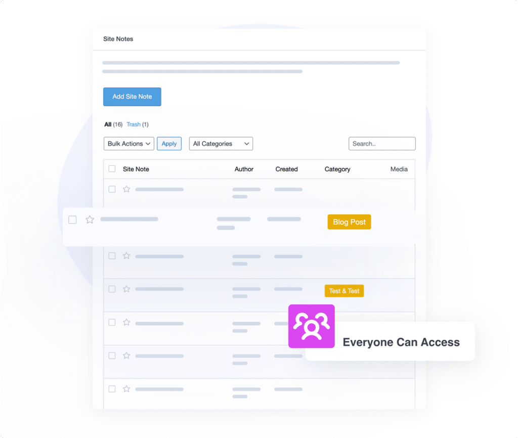 Whether you’re working solo or with a team, everyone can access the notes directly in your WordPress dashboard, ensuring key updates, campaigns, and website changes are aligned. Share insights, track progress, and keep your team on the same page effortlessly.