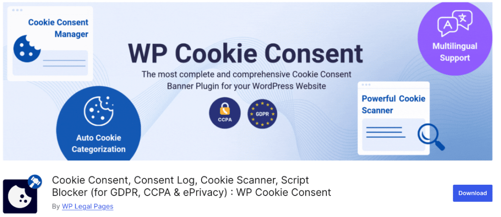 WP Cookie Notice helps you comply with both GDPR and CCPA. This plugin is advertised as being lightweight and fast, and easy to use.