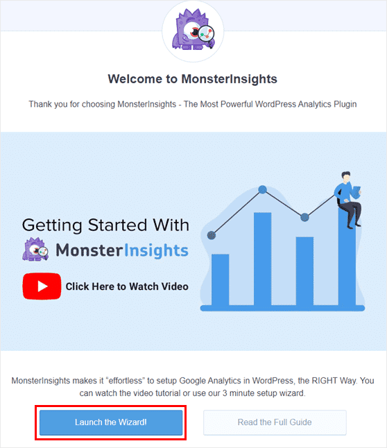 The Setup Wizard connects your site to Google Analytics without any coding or technical knowledge necessary. If you need a full tutorial on setting up MonsterInsights and Google Analytics, read this guide to setting up Analytics the easy way.