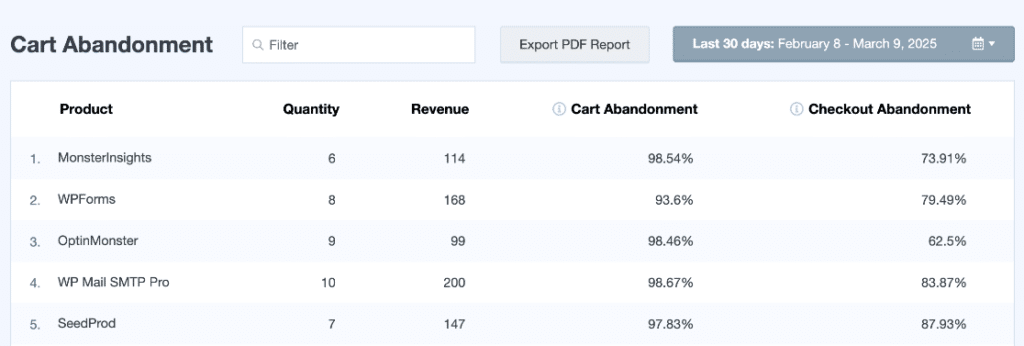 Want to know which products are getting left in shopping carts the most often? Use the Cart Abandonment report: