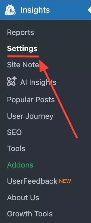 Now you can go to your WordPress admin and navigate to Insights » Settings.