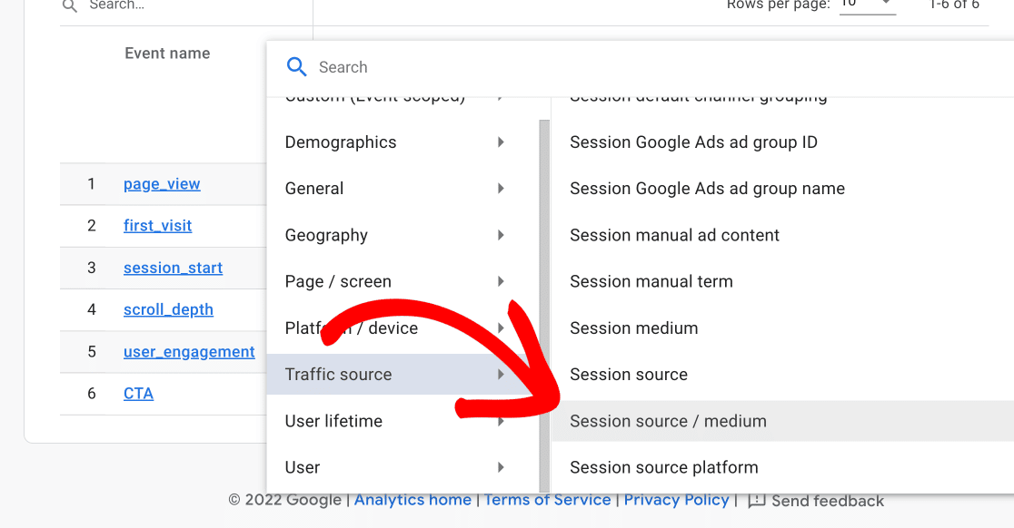 Step 3: Or you can choose a custom parameter of Traffic source » Session source / medium to learn more about how effective your campaigns are.