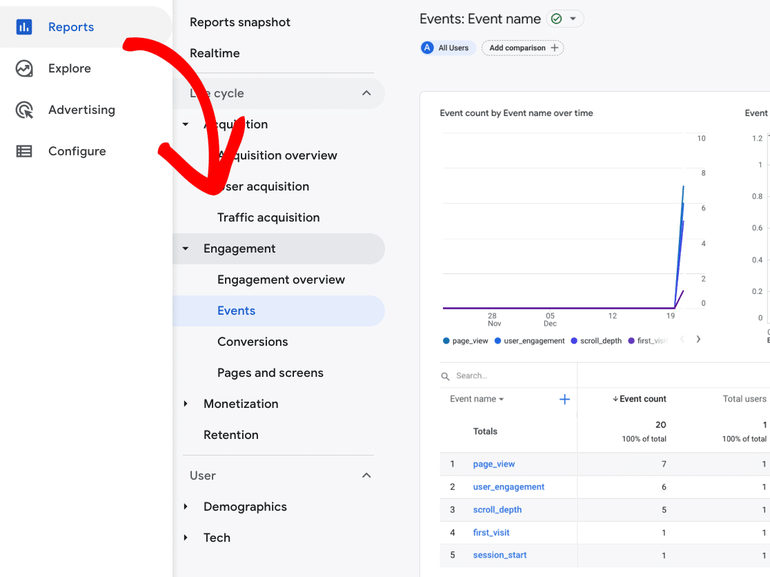 Step 3: Then, go to Reports » Life cycle » Engagement » Events