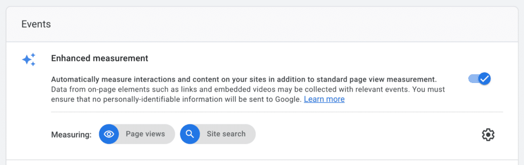 Within your data stream, enable the Enhanced measurement option and then click on the gear icon.