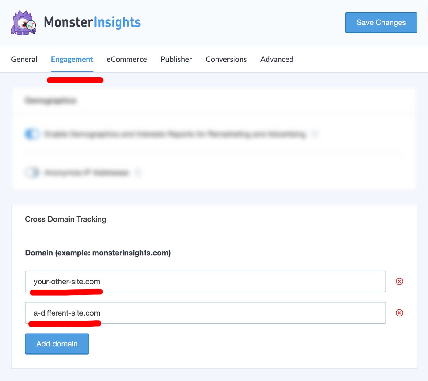 In this article, you’ll first learn how to add your other site domains to the MonsterInsights’ cross-domain tracking setting. Adding your other domains to MonsterInsights works for Google Analytics properties.