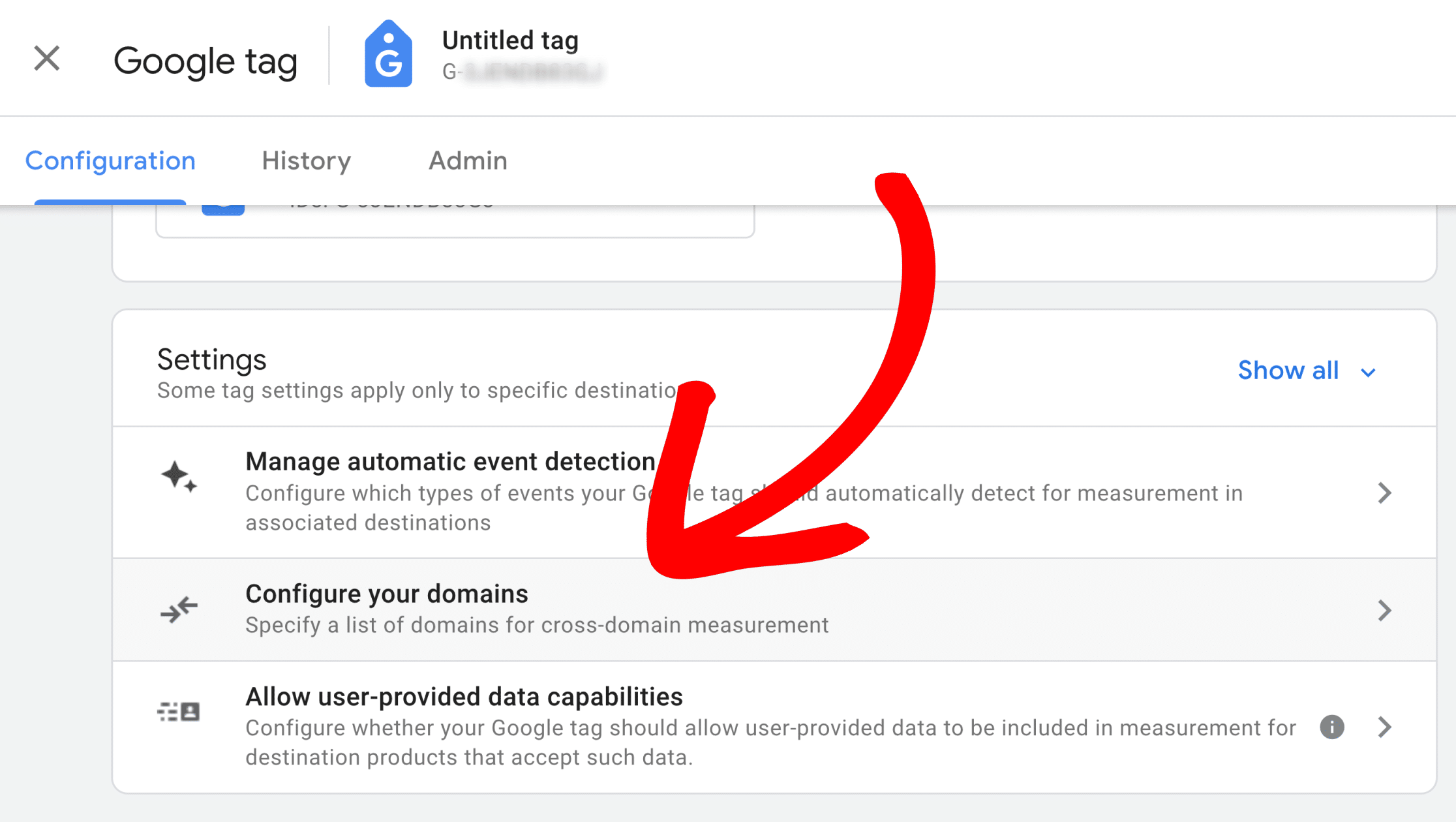 Step 2: Scroll down to the Google tag section and click on Configure tag settings.