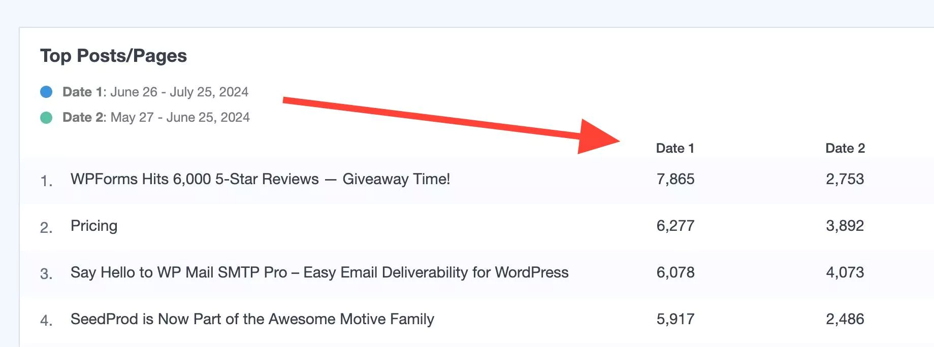 By comparing dates in your MonsterInsights reports, you’ll be able to effectively: