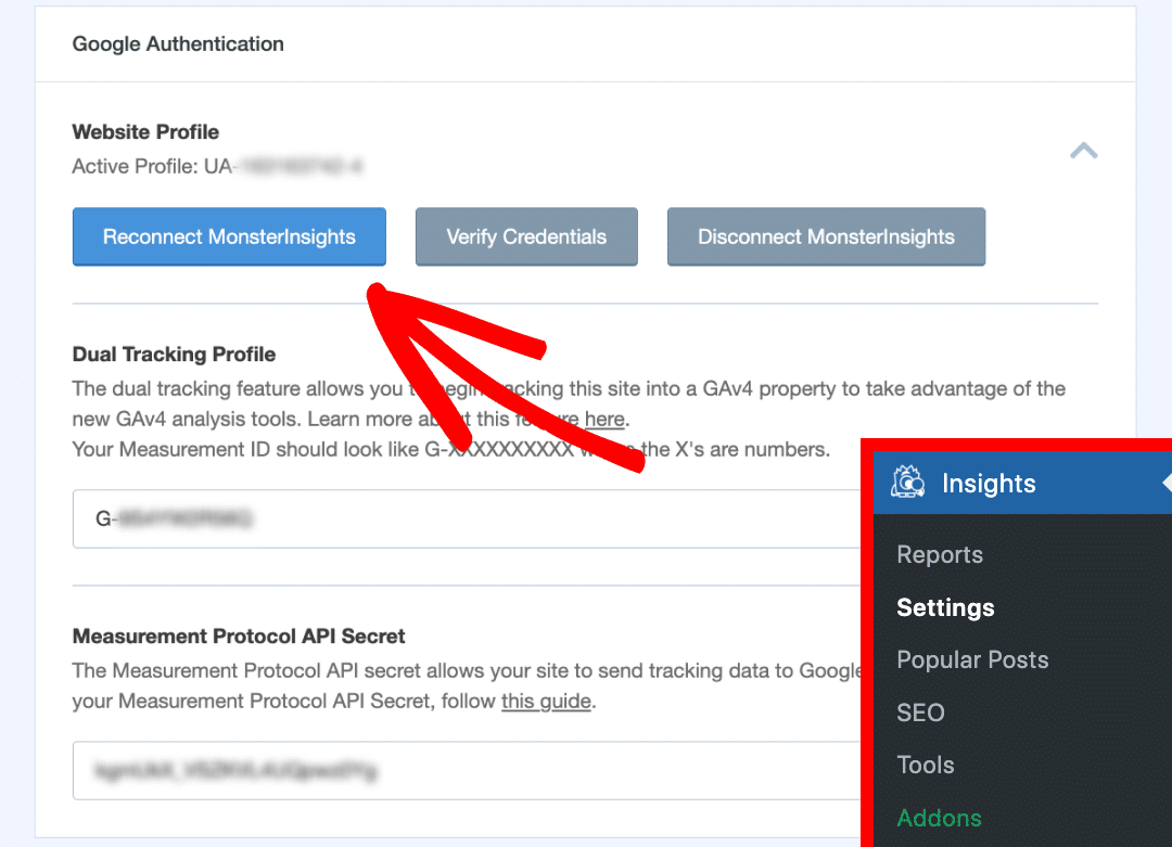 If your IDs do not match, then you’ll need to reconnect MonsterInsights.