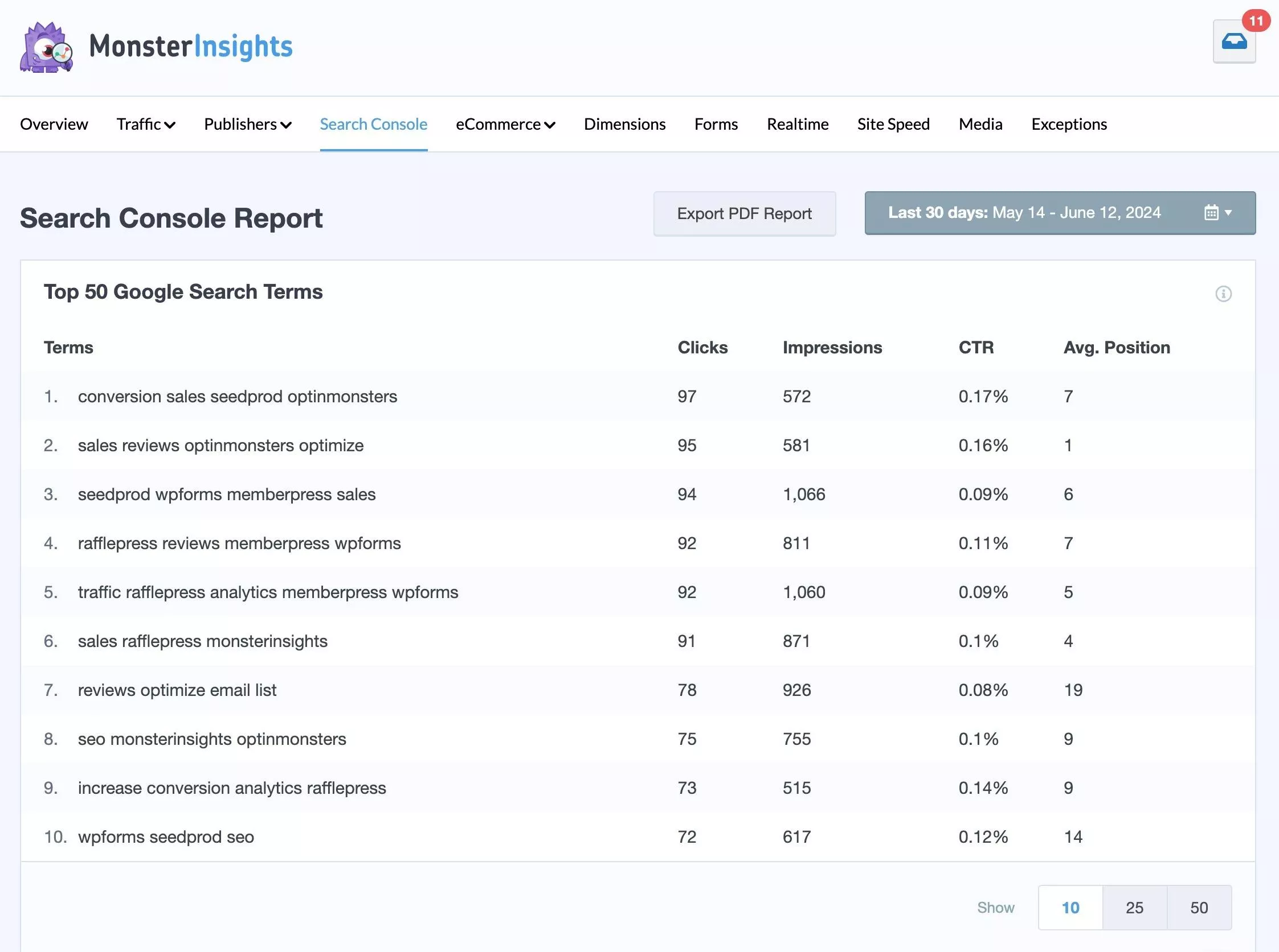 Or, MonsterInsights users can find this data right inside WordPress. Just head to Reports » Search Console: