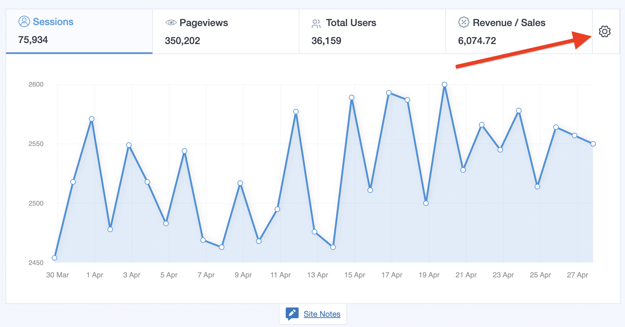Add site notes at Insights » Site Notes whenever you make a change on your website, such as running a promotion to publish a blog post, to better keep track of changes affecting your data.