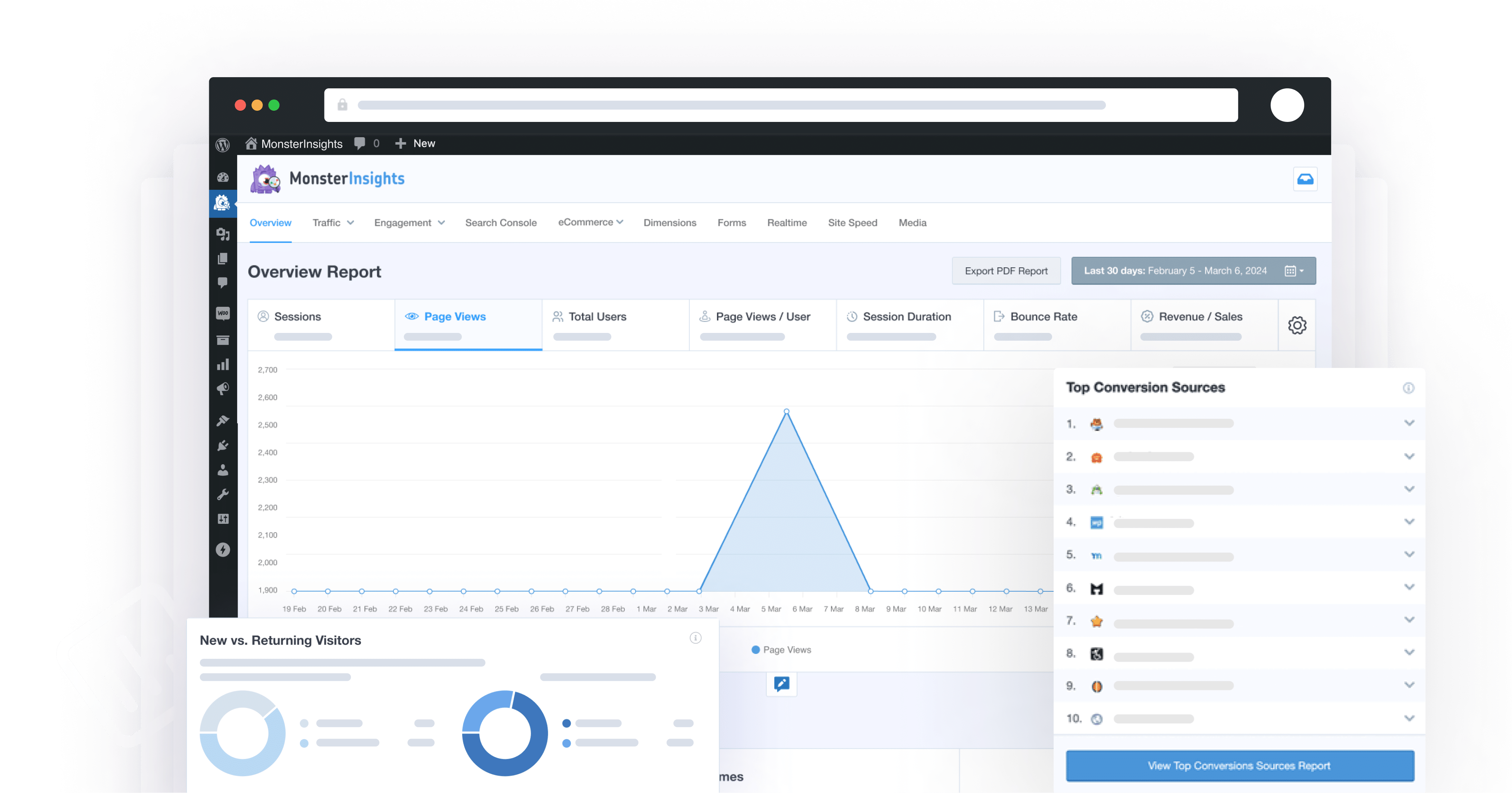 With MonsterInsights, you can check your website analytics directly in your WordPress dashboard. Once the plugin is installed, go to the “Insights” tab to view traffic stats, conversions, user behavior, and more – all in an easy-to-understand format.