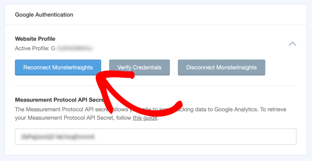 MonsterInsights makes things easy by automating the entire process. All you’ll need to do is reconnect MonsterInsights to your Google Analytics property within your WordPress site.