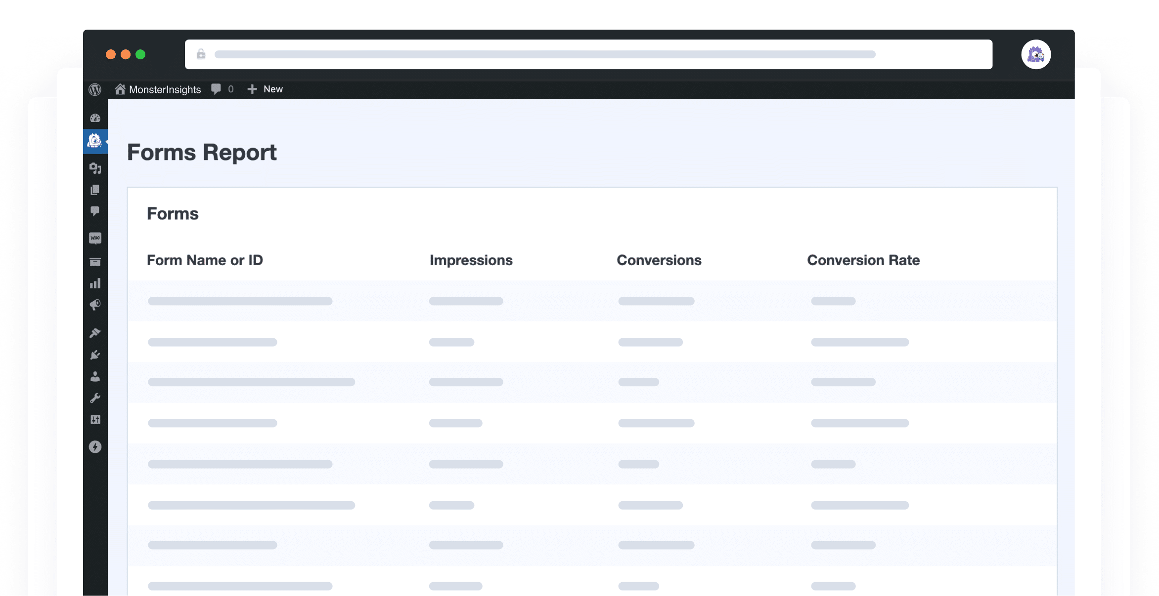 Easily track your form conversions and performance directly in your WordPress dashboard – no coding needed. MonsterInsights works with any form plugin to provide powerful insights to grow your website.