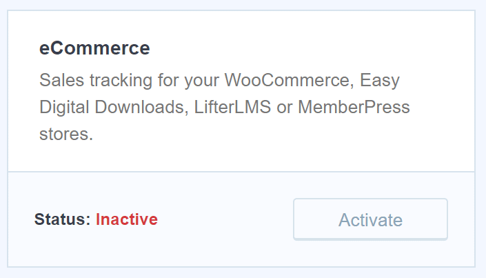 The first step for setting up LifterLMS tracking is to install and activate MonsterInsights eCommerce addon.